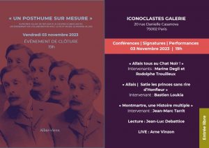 Évènement de clôture de l’exposition « Un posthume sur mesure ». Alphonse Allais de retour à la Galerie Iconoclastes, 20 rue Danielle Casanova (Paris 2ème).
